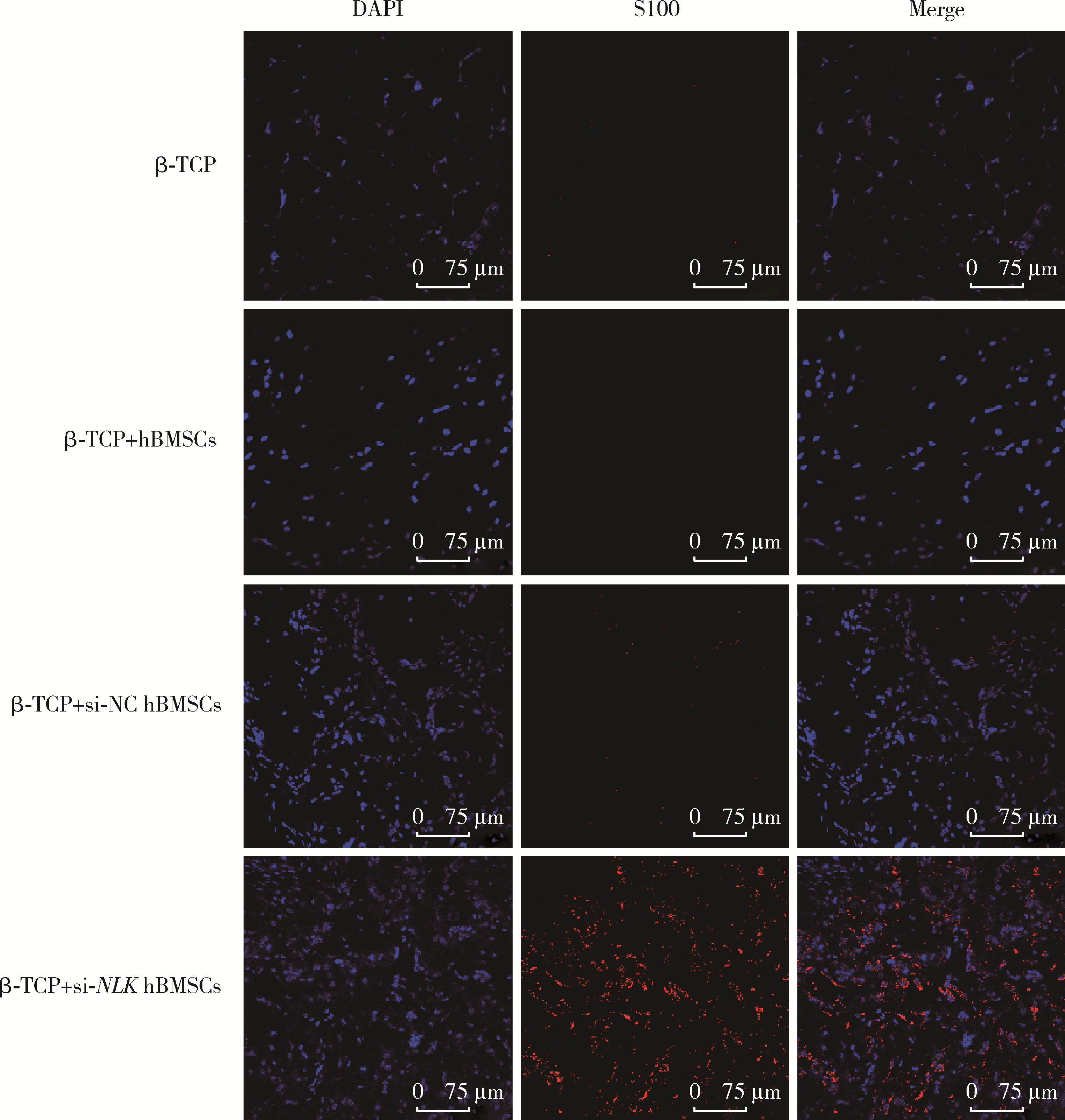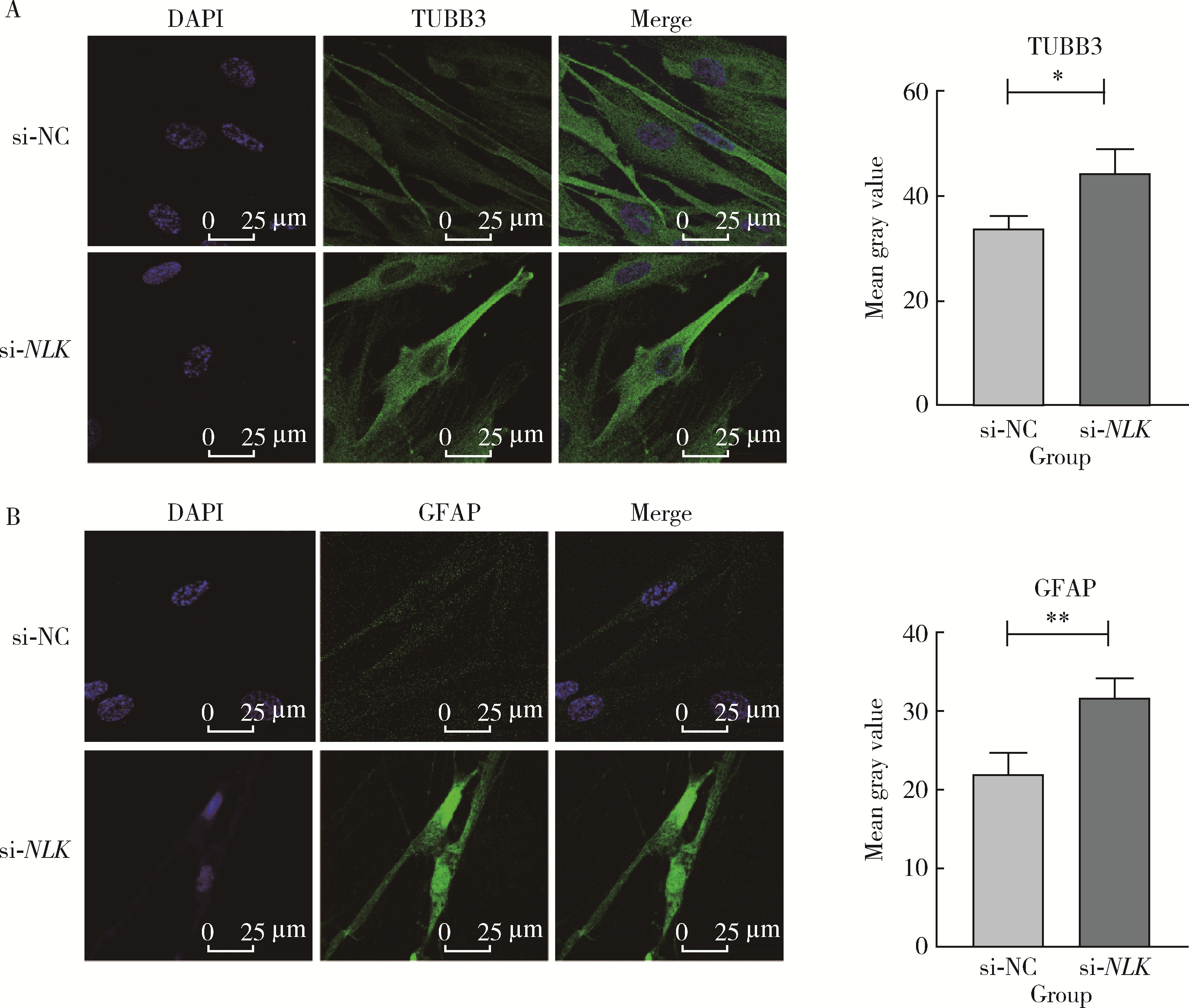 沉默NLK促进hBMSCs成神经向分化的细胞免疫荧光检测"