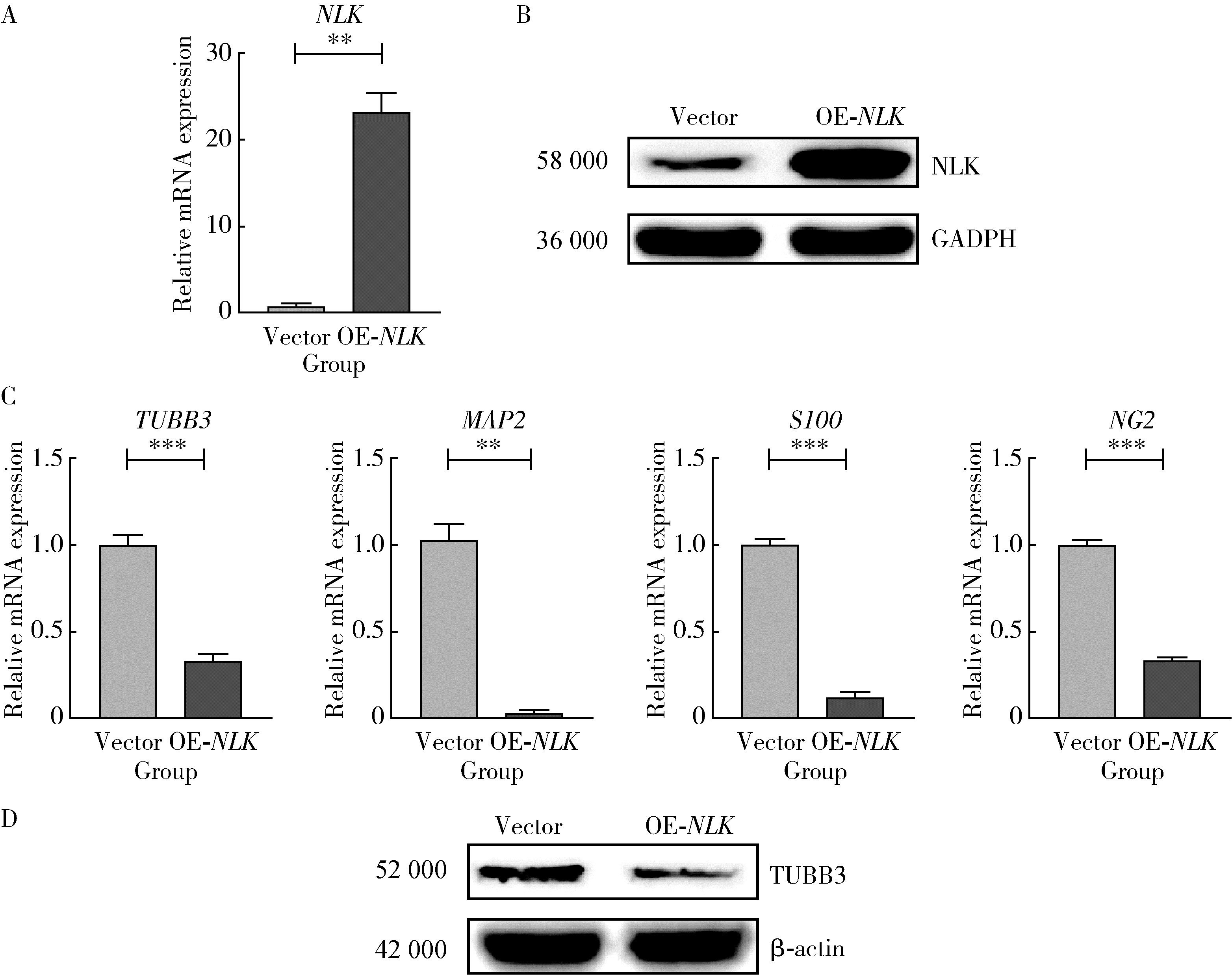 过表达NLK效率检测及过表达NLK抑制hBMSCs成神经向分化的基因、蛋白表达情况"