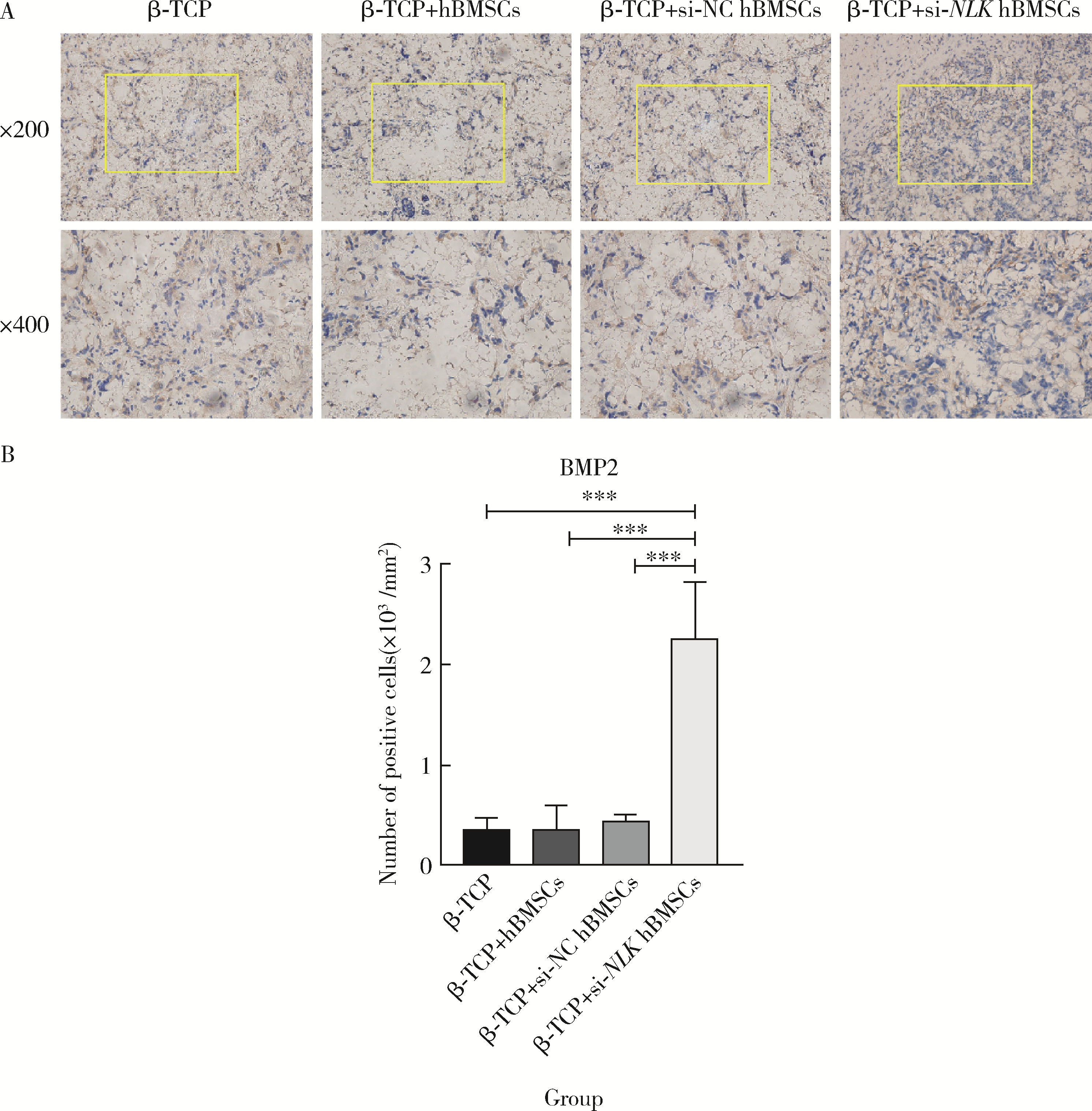 术后4周裸鼠皮下异位成骨标本组织切片免疫组织化学染色"