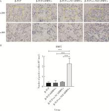 目的: 探讨沉默及过表达Nemo样激酶(Nemo-like kinase,NLK)基因对人骨髓间充质干细胞(human mesenchymal stem cells,hBMSCs)神经向分化的作用,并探究小干扰RNA(small interfering RNA,siRNA)沉默NLK基因表达对促进神经化组织工程骨再生的影响。方法: 在hBMSCs中分别转染siRNA沉默NLK基因(实验组转染沉默NLK基因的siRNA,对照组转染对照siRNA并记为阴性对照组)或慢病毒过表达NLK基因(实验组感染过表达NLK基因的慢病毒,对照组感染空载体慢病毒并记为空载体组),之后通过实时荧光定量聚合酶链式反应(quantitative real-time polymerase chain reaction, qPCR)、蛋白质印迹实验(Western blot)、免疫荧光实验检测敲低、过表达NLK基因对hBMSCs神经向分化的影响。采用6周龄雄性BALB/C nu/nu裸鼠构建皮下异位成骨模型,分为以下4组:① β-磷酸三钙(β-tricalcium phosphate, β-TCP)组,② β-TCP+ hBMSCs成骨诱导组,③ β-TCP+siRNA-阴性对照(negative control, NC) 转染的hBMSCs成骨诱导组,④ β-TCP+ siRNA-NLK转染的hBMSCs成骨诱导组。术后4周获取标本,通过组织形态学染色检测裸鼠体内成骨成神经情况,使用独立样本t检验进行统计学分析。结果: siRNA沉默hBMSCs的NLK基因后,神经相关基因βⅢ微管蛋白(class Ⅲ β-tubulin,TUBB3)、微管相关蛋白2(microtubule association protein-2,MAP2)、可溶性蛋白-100(soluble protein-100,S100)、巢蛋白(nestin,NES)、NG2蛋白聚糖(NG2 proteoglycan,NG2)及降钙素基因相关肽(calcitonin gene-related peptide, CGRP)表达较阴性对照组显著升高(P < 0.05),TUBB3、MAP2等蛋白表达也升高。慢病毒过表达NLK基因后,与空载体组相比,神经相关基因TUBB3MAP2S100NG2表达水平均显著下降(P < 0.05),TUBB3蛋白表达降低。构建裸鼠皮下异位成骨模型术后4周发现β-TCP+siRNA-NLK转染的hBMSCs成骨诱导组较其他3组形成更多矿化组织,并且成骨相关标记物BMP2及成神经相关标记物S100显著高表达。结论: siRNA沉默NLK基因可以促进hBMSCs体外神经向分化,并在裸鼠体内异位成骨模型中能够促进神经化组织工程骨的形成。