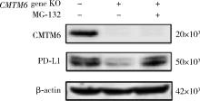 Western blot检测CMTM6基因敲除及应用蛋白酶抑制剂MG-132后GES-1细胞PD-L1蛋白水平"