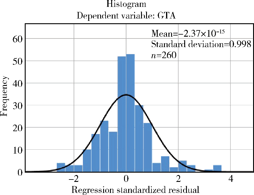 表5 GTA的组间多重比较(P value)Table 5 Multiple comparisons of GTA between groups (P value) |