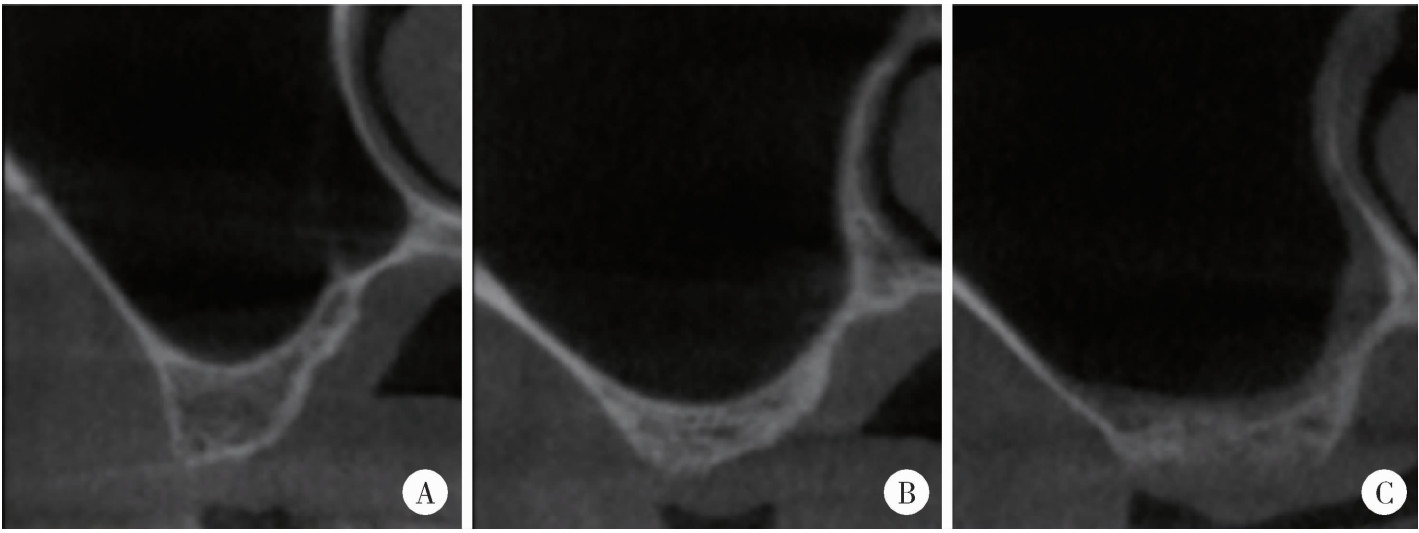 Morphology of maxillary sinus in the buccal and palatal directions A, taper; B, round; C, flat."