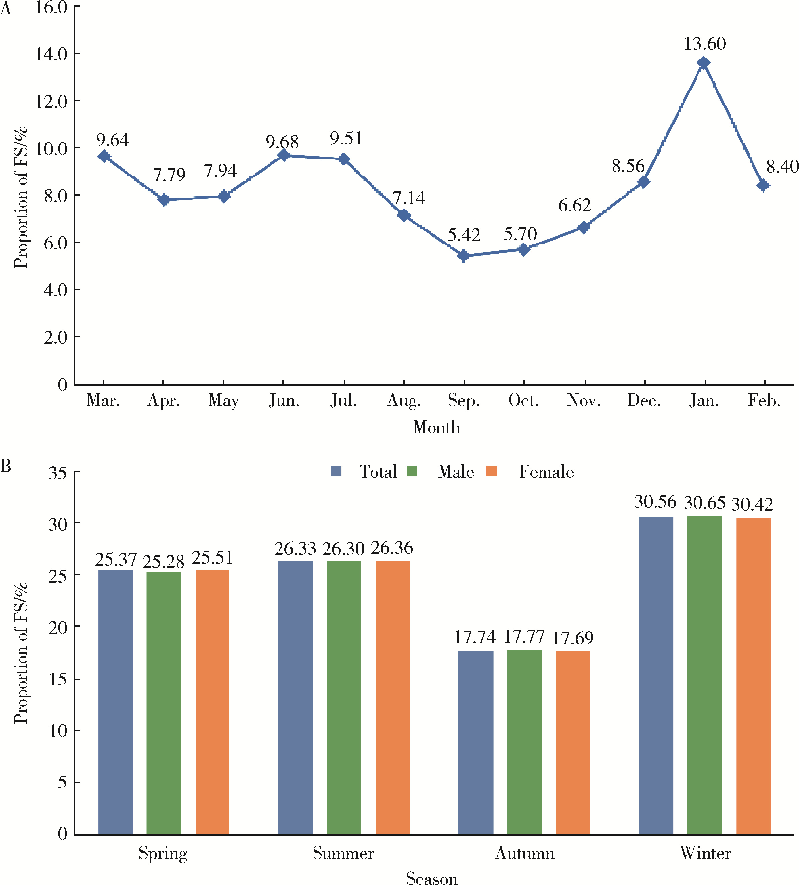 | Variable | Number of FS episodes, n (%)a | Follow-up(/person-years) | Incidence density (95%CI)(/1 000 person-years) |