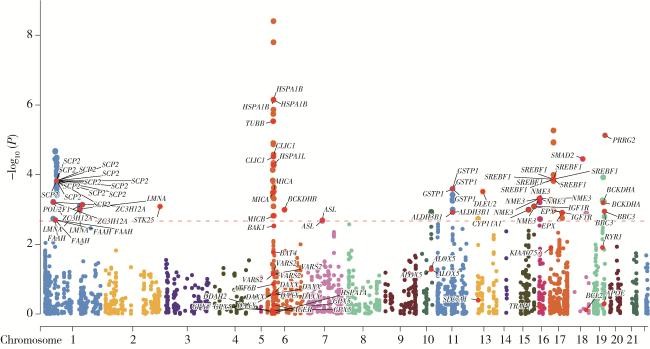 | COX6B1 | 1.16 | 1.059-1.261 | 0.032 |