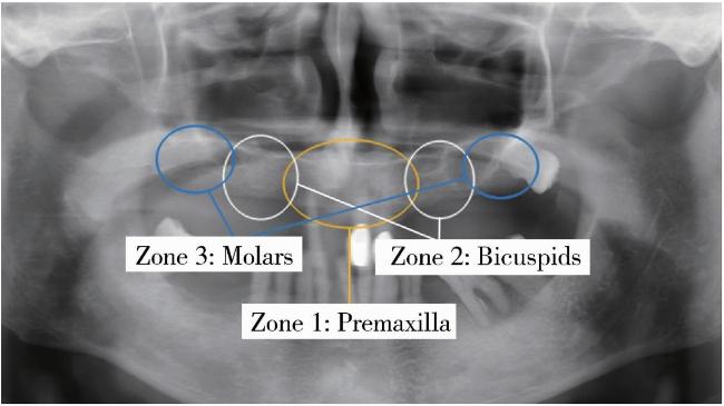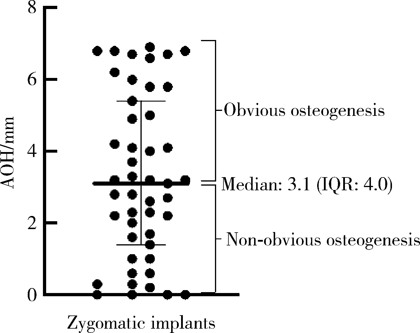 表3 穿颧种植体的剩余牙槽骨高度Table 3 Residual bone height of zygomatic implants |