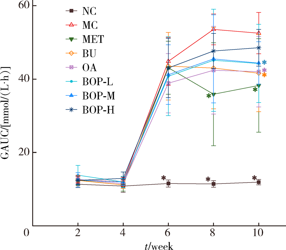 | 图3 BOP对于糖尿病大鼠GAUC的影响($\bar{x} \pm s$, n=8) |